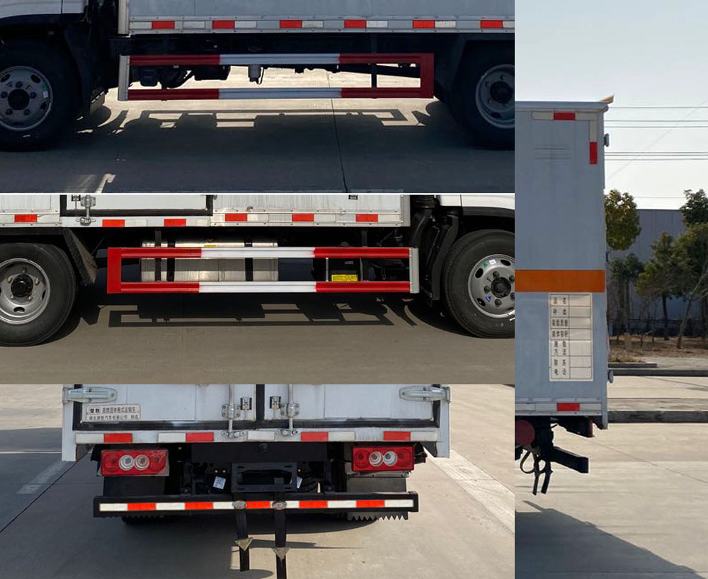 | 配置 | 該車為危險品運輸車,運輸具有**容器(瓶)包裝的物品,運送危險物品類項號:4.1,4.2,4.3。廂體頂部封閉,不可開啟。側(cè)后防護(hù)材料均為Q235,螺栓連接,后防護(hù)截面尺寸(mm)100×50,下邊緣離地高450mm。選裝后部尾板,選裝后部尾板時后防護(hù)材料為Q235,螺栓連接,截面尺寸(mm)φ100,下邊緣離地高450mm。廂體選裝側(cè)開門及位置或無側(cè)門、選裝后門雙拉桿,廂體選裝瓦楞板結(jié)構(gòu),選裝百葉窗。僅選用排氣管前置、限速裝置(限速80km/h)、前輪盤式制動及子午線輪胎的底盤;轉(zhuǎn)向輪裝備輪胎爆胎應(yīng)急防護(hù)裝置。安裝帶有衛(wèi)星定位功能的行駛記錄儀。ABS型號/生產(chǎn)廠家:ABS-E/威伯科汽車**系統(tǒng)(**)有限公司,ABS-VI·E/廣州瑞立科密汽車電子股份有限公司,YF8/武漢元豐汽車電控系統(tǒng)有限公司。發(fā)動機(jī)/油耗值(L/100Km)對應(yīng)關(guān)系為: F2.8NS6B131/11.47,Q28-130E60/11.02。尾板收起狀態(tài)水平長度為280mm,尾板質(zhì)量為350kg。選裝ETC。 | ||