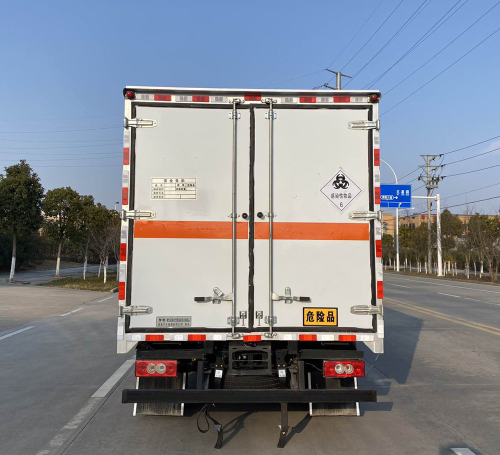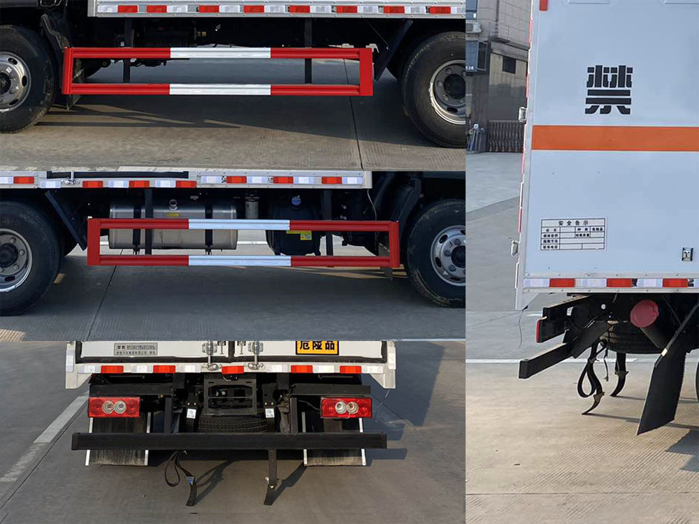 | 其它: | 1、該車適用于運輸危險品。廂體頂部封閉不可開啟。運輸具有獨立容器(瓶)包裝的物品,運送危險物品類項號:6.1,6.2。2、側(cè),后防護(hù)材料均為Q235,螺栓連接;后防護(hù)截面尺寸100×50mm,下邊緣離地高410mm。廂體側(cè)面選裝開門型式及位置,選裝不帶側(cè)開門,選裝瓦楞板結(jié)構(gòu);選裝百葉窗。3、隨底盤選裝排半駕駛室。僅選用排氣管前置、限速裝置(限速80km/h)、前輪盤式制動及子午線輪胎的底盤;轉(zhuǎn)向輪裝備輪胎爆胎應(yīng)急防護(hù)裝置。安裝帶衛(wèi)星定位功能的行駛記錄儀。ABS系統(tǒng)型號:ABS-VI.E;生產(chǎn)企業(yè):廣州瑞立科密汽車電子股份有限公司;ABS系統(tǒng)型號:ABS-E;生產(chǎn)企業(yè):威伯科汽車控制系統(tǒng)(中國)有限公司;ABS系統(tǒng)型號:ABS8.8 ECU 24V,生產(chǎn)企業(yè):東科克諾爾商用車制動系統(tǒng)(十堰)有限公司;發(fā)動機/油耗值(L/100km)對應(yīng)關(guān)系為:CY4SK261/16.09,D30TCIF1/16.19,F2.8NS6B156/15.39,F3.8NS6B156/14.90??蛇x裝ETC車載裝置。 | ||
