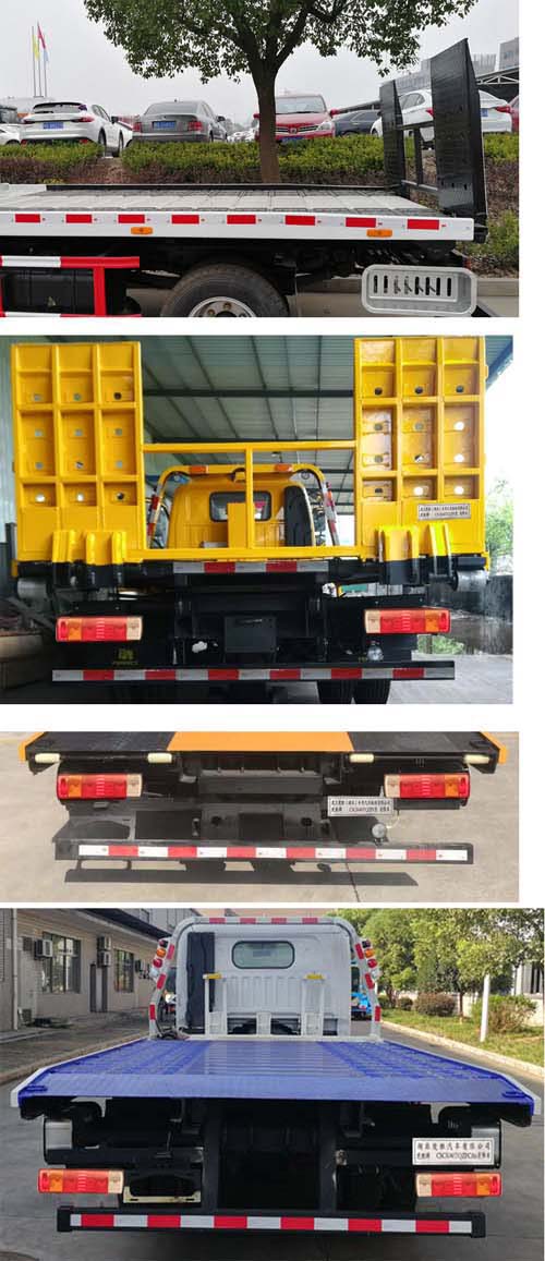 | 配置 | 該車主要用于道路摩托車清障,主要專用裝置為平板、絞盤、鋼絲繩、油缸。托舉質(zhì)量:500kg;側(cè)防護采用冷彎型鋼/Q235,螺栓連接;后防護采用冷彎型鋼/Q235,焊接,截面尺寸100×50mm,離地高450mm。平板后部選裝上尾板及選裝無上尾板。隨底盤選裝排半駕駛室,選裝改側(cè)窗的駕駛室,選裝新前臉駕駛室,選裝不同的側(cè)門結(jié)構(gòu),選裝新結(jié)構(gòu)的保險杠。ABS防抱死制動系統(tǒng)生產(chǎn)廠家/型號:1.廣州瑞立科密汽車電子股份有限公司/CM4XL-4S/4M;2.浙江萬安科技股份有限公司/VIE ABS-II。選裝龍門架樣式。 | ||