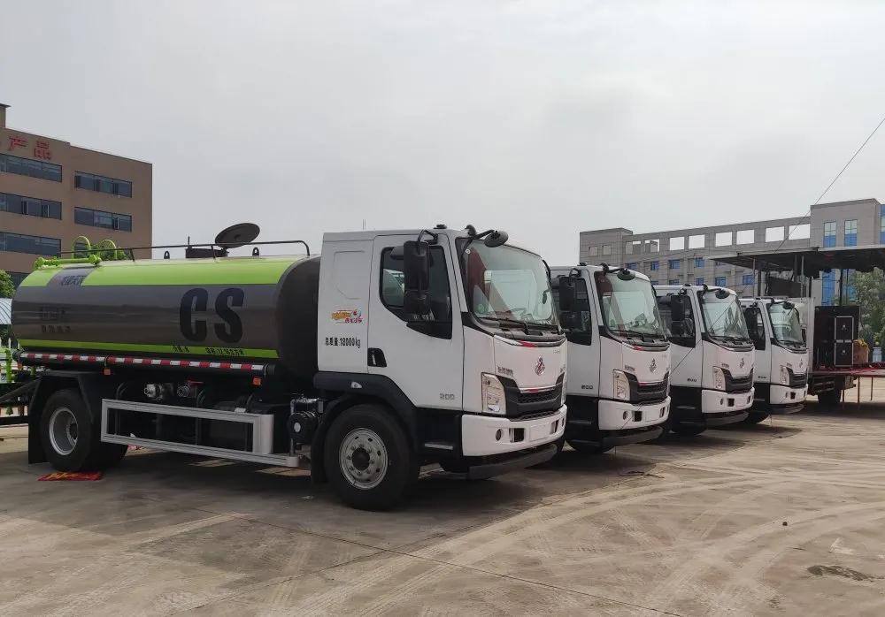 另加一個工具箱,后尾部管道安裝兩個 1 寸的放水口,其他為灑水車標配。油漆按照環(huán)衛(wèi)產(chǎn)品新涂裝方案執(zhí)行,貼反光標識。