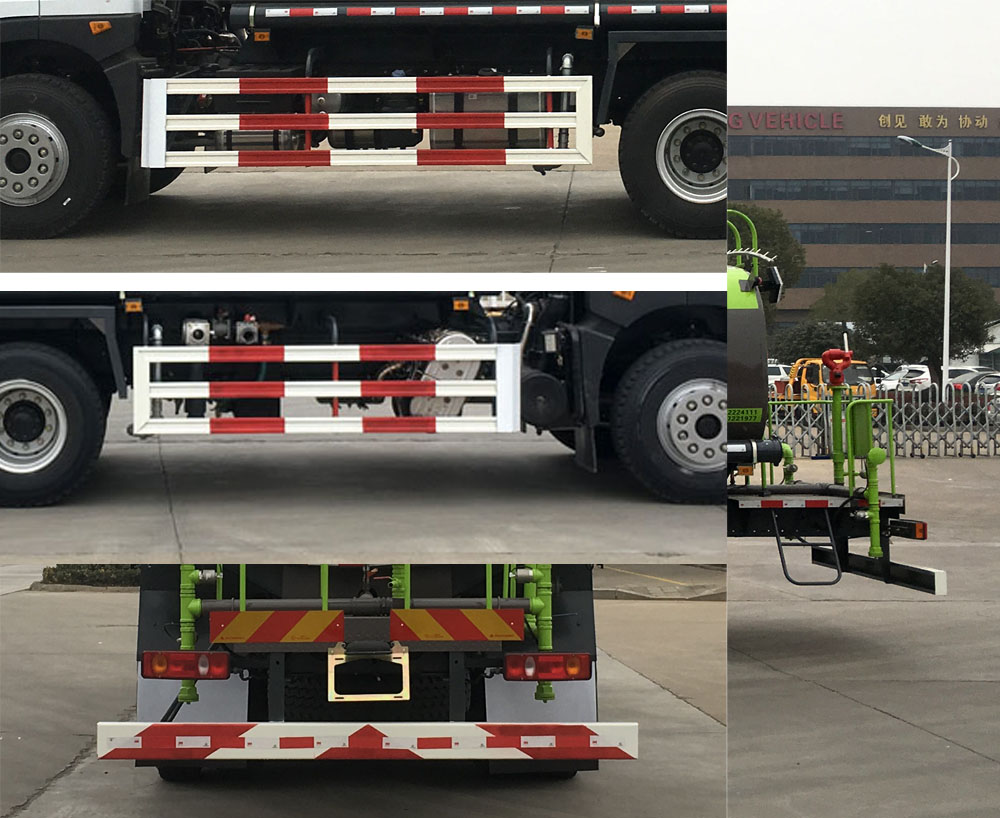 | 配置 | 該車用于路面灑水及園林綠化,主要專用裝置為噴灑總成。罐體有效容積:15.22立方米。罐體外形尺寸(長×寬×高)(mm):6500×2240×1520。側、后防護均采用Q235,螺栓連接;后防護截面尺寸:150×80mm,下邊緣離地高470mm。隨底盤選裝駕駛室,僅選用4350+1350(mm)軸距底盤。ABS**器型號/生產企業(yè):3631010-C2000/東科克諾爾商用車制動系統(tǒng)(十堰)有限公司,J ABS/焦作博瑞克**技術有限公司。 | ||